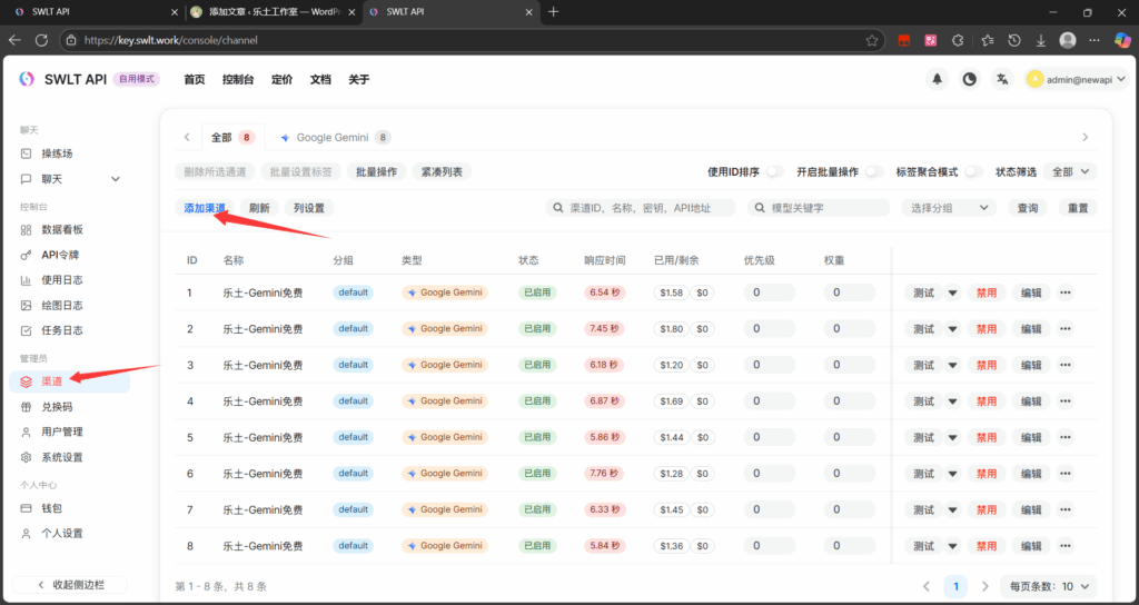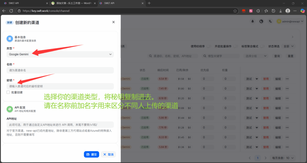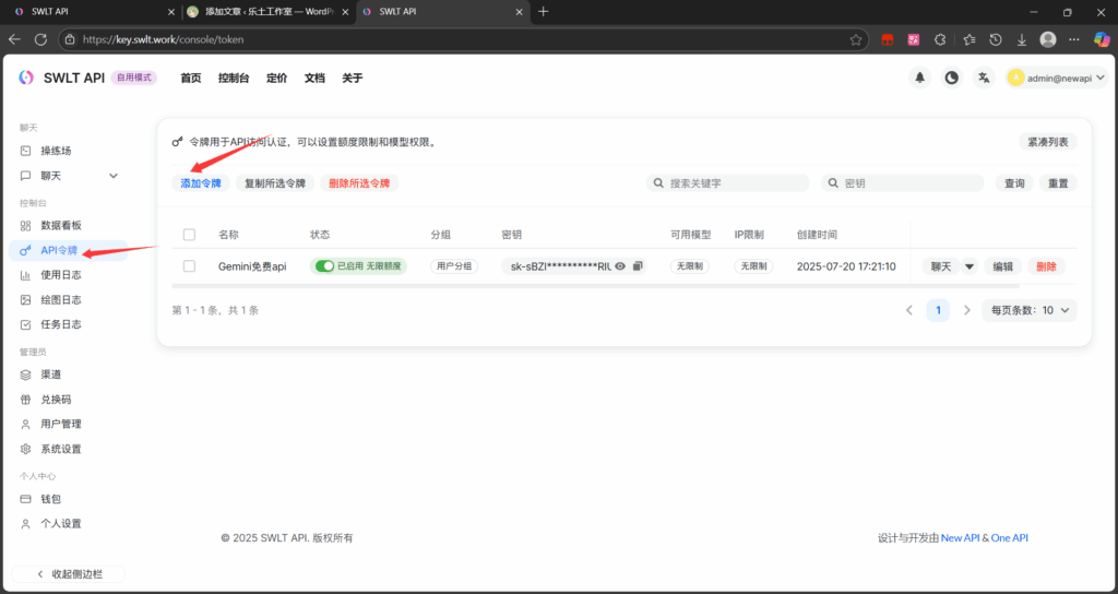 接下来把自己的api设置好后,在令牌页面添加令牌并复制。